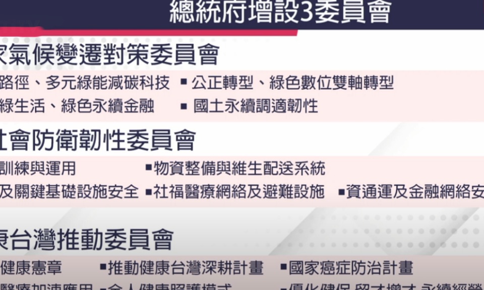 賴清德總統上任剛滿一個月,隨即宣布在府內成立三個委員會,包含國家氣候變遷對策委員會、全社會防衛韌性委員會、及健 […]