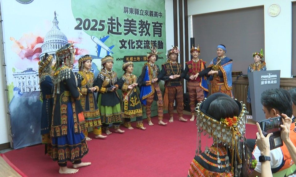 來義高中學生身著族服、在記者會上吟唱古謠,象徵著即將啟程赴美展開跨文化交流;本次交流由駐美代表處邀請、經屏東縣 […]