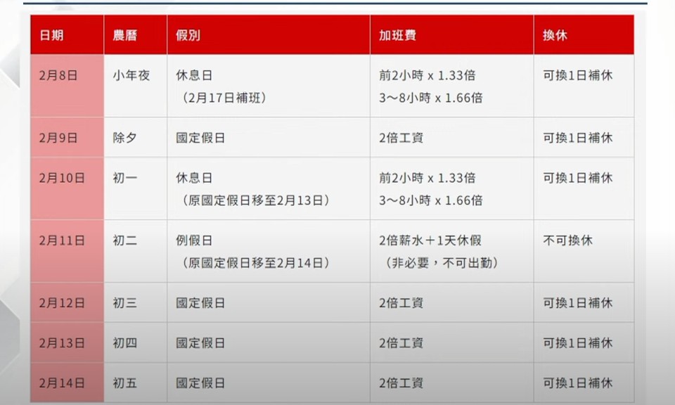 春節出勤工資給付 月薪制至少領雙倍薪