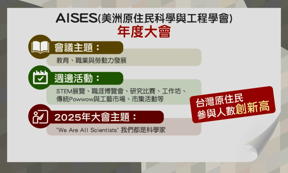 AISES美洲原住民科學與工程學會成立於1977年的非營利組織,長年支援美洲、阿拉斯加、夏威夷等原住民社群,在 […]