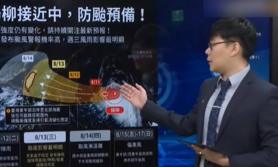 氣象署預報員 官欣平:「目前楊柳颱風直朝台灣,今早(11)八點依路徑預估將從花東地區登陸;12號晚間起東半部地 […]