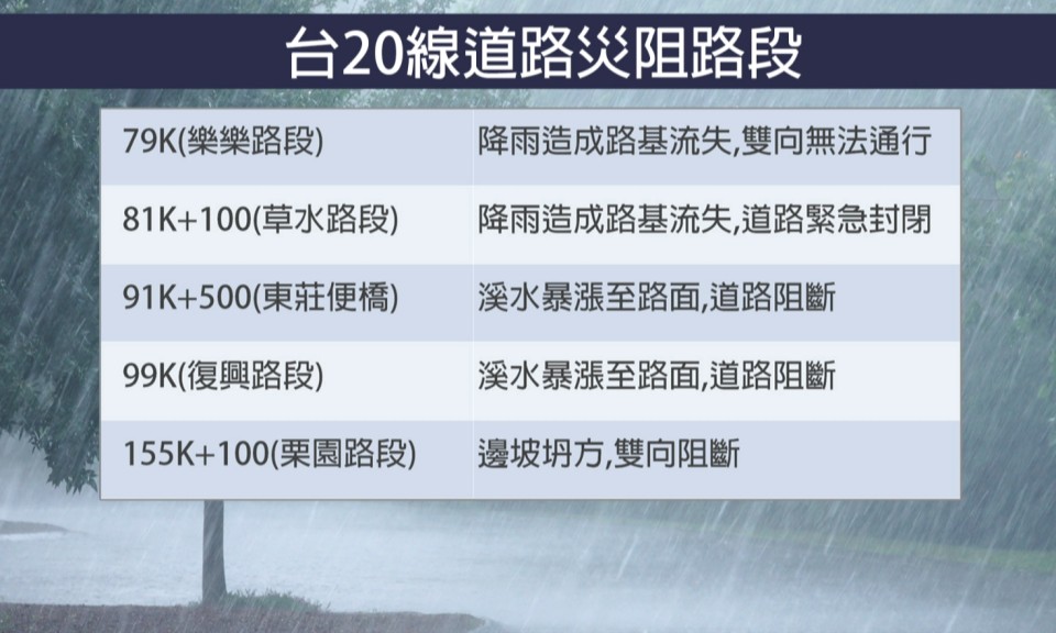 台20線多處路段災損 工務段封閉道路管制