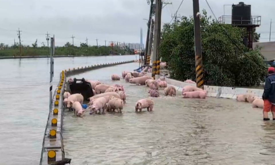 朴子大排潰堤豬隻逃竄 台電工程車一度受困