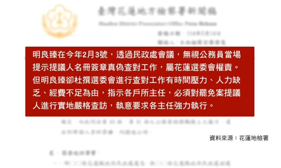 花蓮罷免傅崐萁查水表案 3官員遭起訴