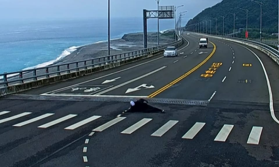 扮「無臉男」躺金崙大橋 警將追查身分開罰