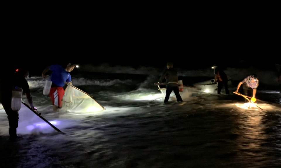 禿頭鯊魚苗洄游旺季 南迴民眾挑燈賺外快