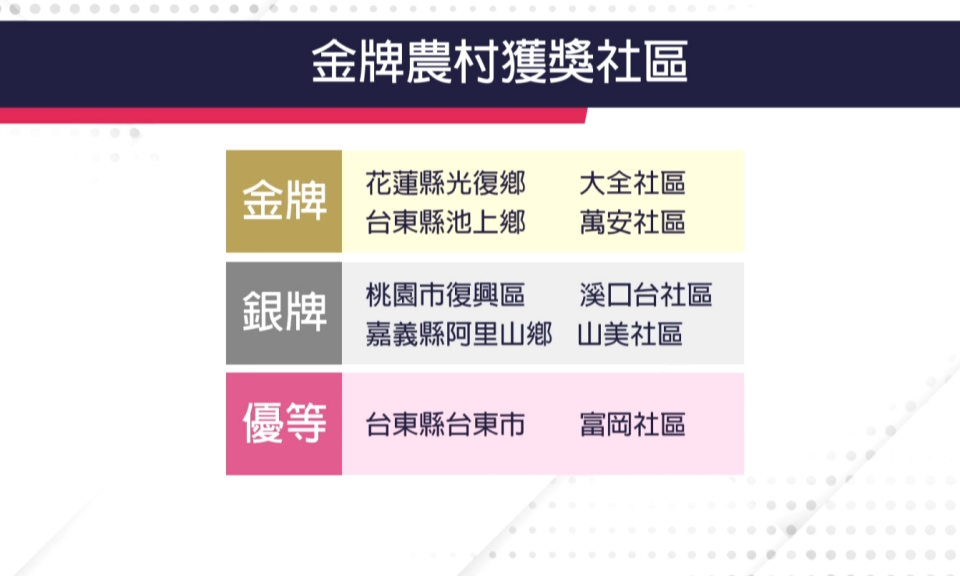 第三屆金牌農村頒獎典禮 3原鄉榮獲金、銀牌