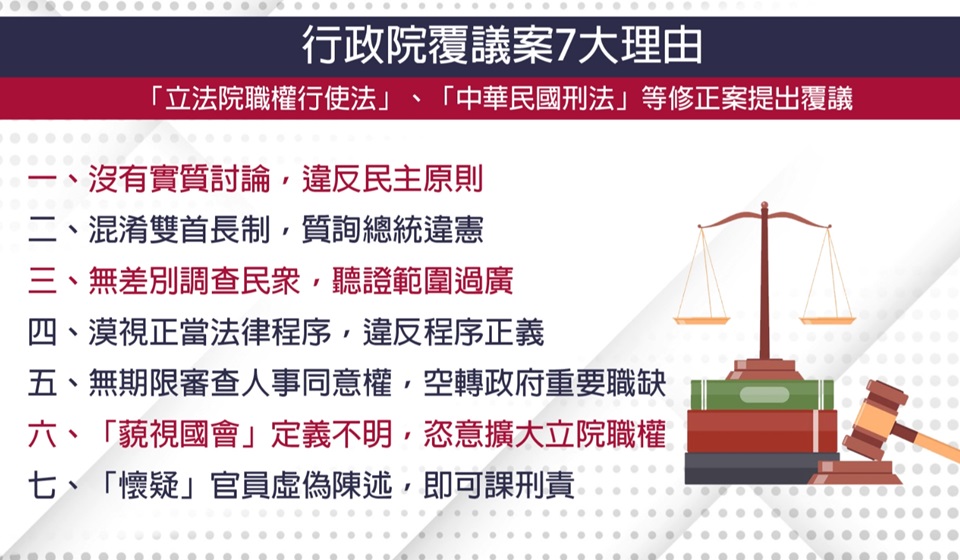 行政院長 卓榮泰:「修正立法院職權行使法,部分條文增訂,中華民國刑法第5章之一章名,以及第141-1條文,有違 […]