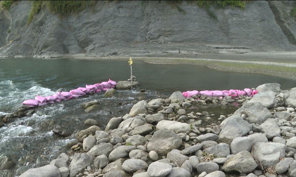 兩人協力把水中大石頭滾動排列之後,依序把每袋25公斤以上的沙包堆疊放置,形成一個小型的水道。族人正在復振一項消 […]