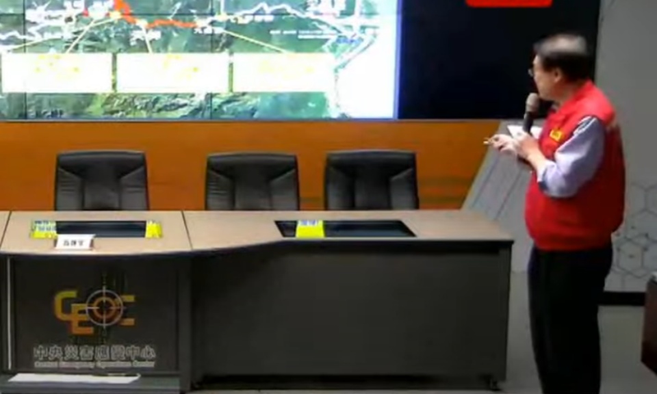 林右昌坐鎮中央災變中心 報告中橫搶通進度