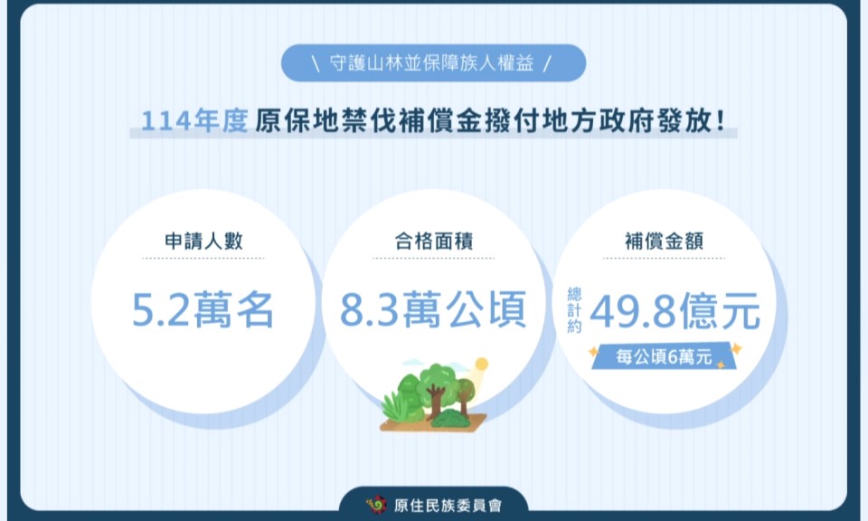 為守護山林並保障族人權益,總統於113年6月24日公布《原住民保留地禁伐補償條例》修正案,自114年起,禁伐補 […]