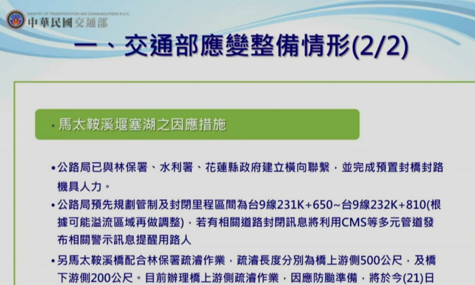 樺加沙陸警發布 馬太鞍溪堰塞湖紅色警戒