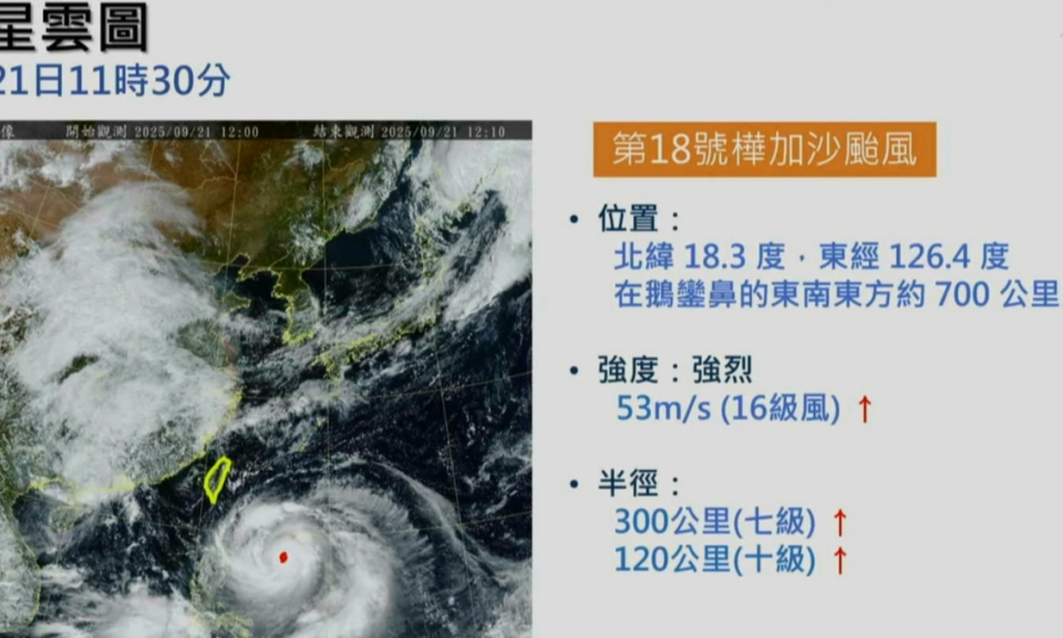 氣象署簡任技正 伍婉華:「中央氣象署發布今年第18日,中度颱風樺加沙海上颱風警報,目前中度颱風樺加沙在早上8點 […]
