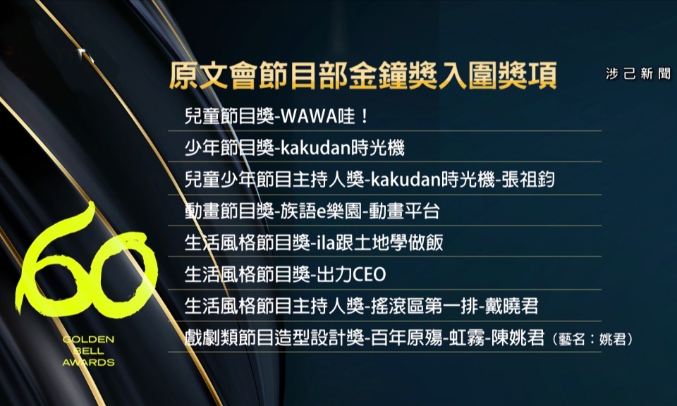 【涉己新聞】賀!第60屆金鐘獎 原文會入圍7節目1戲劇