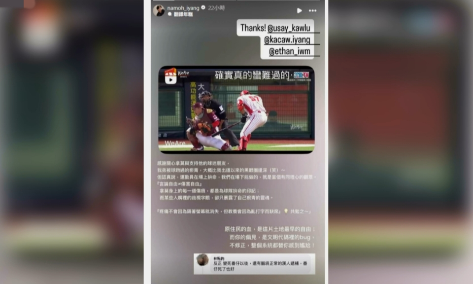 用族語親切地和球員打招呼的,是味全龍隊的阿美族球員Namoh Iyang。日前他在比賽中被觸身球擊中,卻在事後 […]