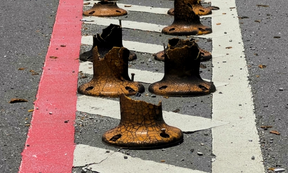 整排防撞桿全都斷了頭,原本亮黃色的桿身,竟出現像是燒焦的碳黑色,塑膠桿呈現軟化碎裂,有的甚至只剩下底座,徒手就 […]