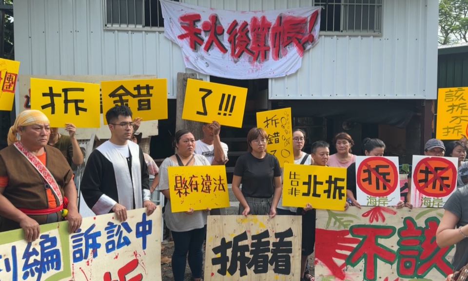 莿桐部落房屋涉違建遭強拆 民團築人牆阻擋