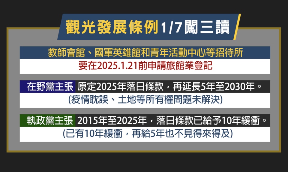 「觀光發展條例」修法 延長特定旅宿落日條款