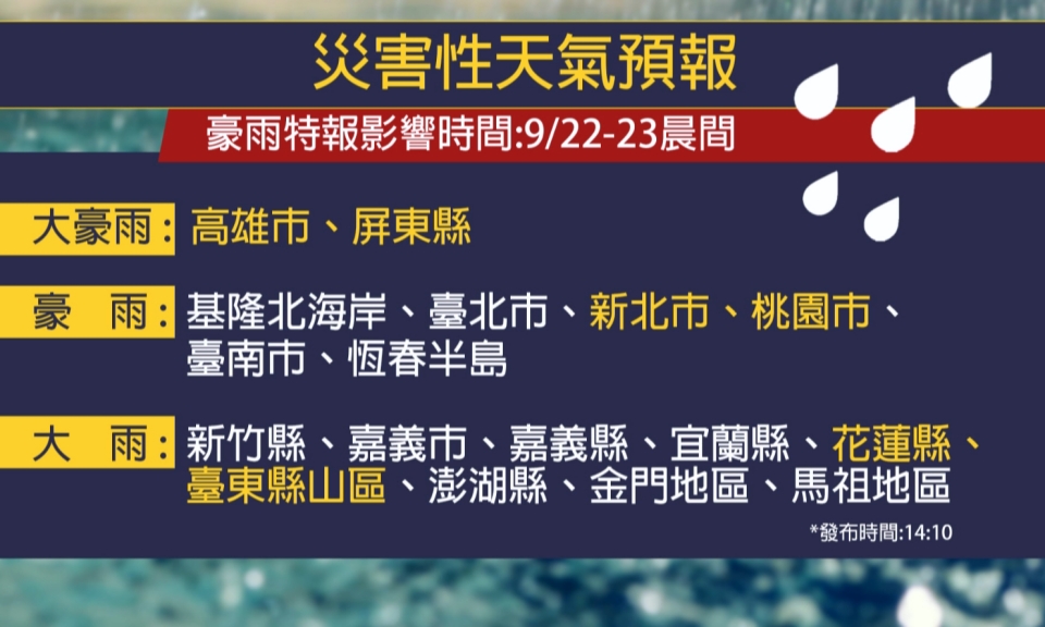 低壓帶影響雨彈狂炸 預估9/24雨勢趨緩