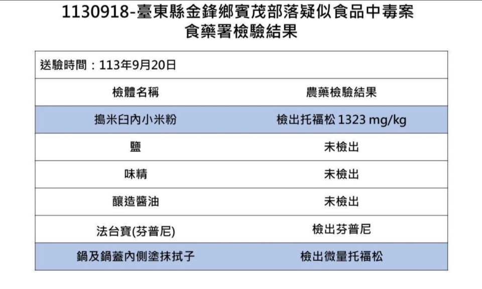 台東賓茂部落疑似集體中毒案,21日衛福部公布最新檢體報告,顯示在曾老婦人當時用的搗米臼內取出的小米粉中,檢測檢 […]