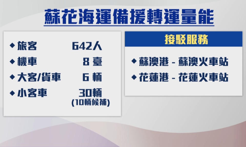 颱風肆虐,無論公路鐵路不是路基掏空、就是遭土石掩埋,造成宜蘭花蓮交通大亂、無法通行;因此交通部長責成航港局,祭 […]