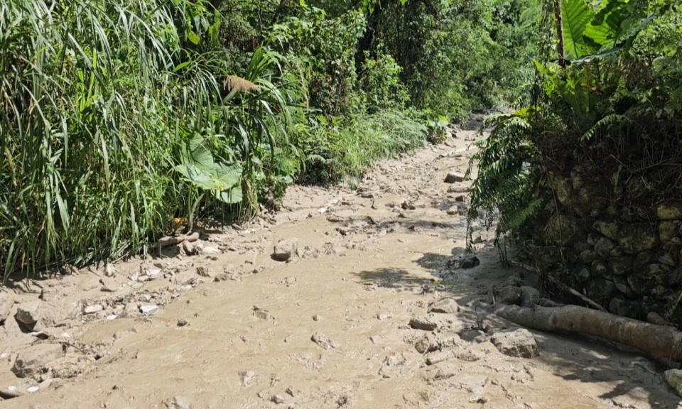 震後暴雨土石流 黃泥淹沒三棧部落道路