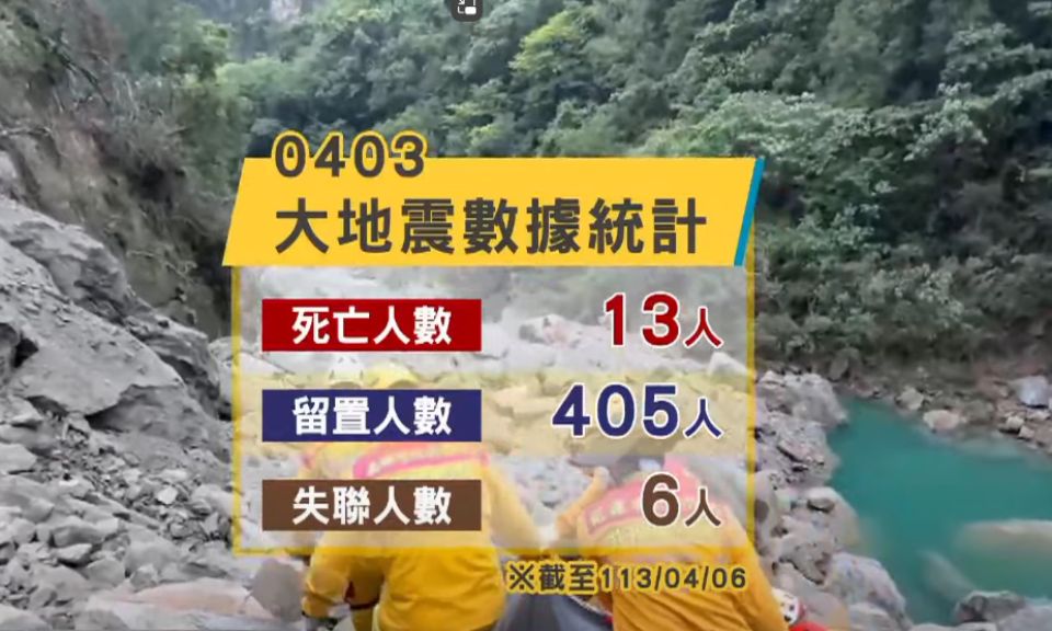花蓮震災13死6失聯 餘震不斷增救援難度