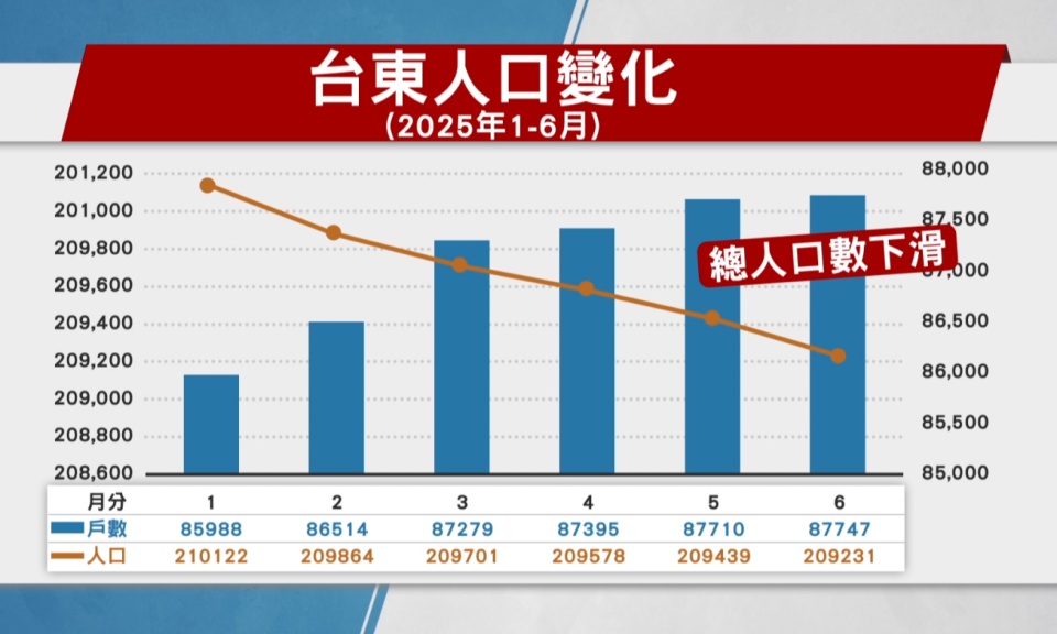 全國人口年減逾6.6萬人 台東人口跌破21萬