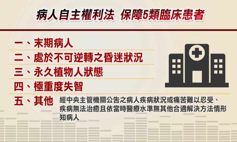 105年1月6日國內公布《病人自主權利法》,保障了末期病人、永久植物人等5類臨床病人,提供有知情選擇與決定的權 […]