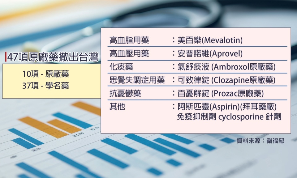根據衛福部食藥署統計,截至今年9月底,已有47項藥品將退出台灣,其中有10種屬於原廠藥、37種屬於學名藥。包含 […]