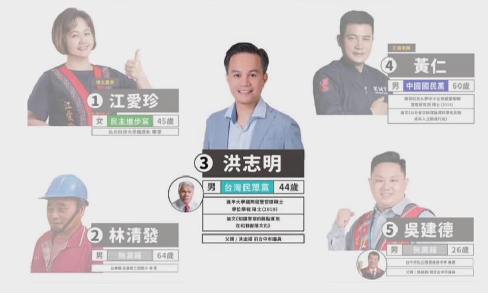 這次台中市議員第15選區,選情激烈形成5搶一的局面,先來看到候選人中唯一的女力江愛珍,擁有阿美族加噶瑪蘭族血統 […]