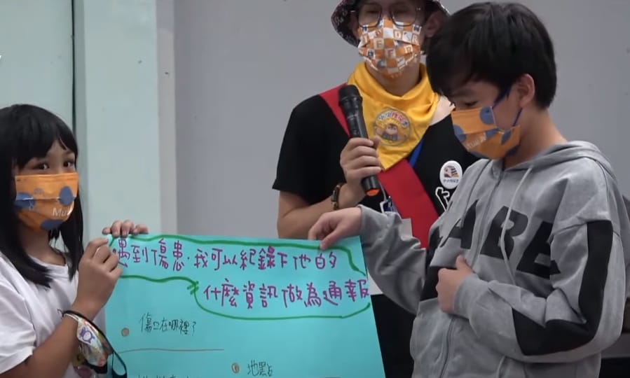 春日國小的學童們上台分享防災學習的心得,這裡是「小小防災士2.0」的推廣體驗課程,學童們也透過實際手動過程中認 […]