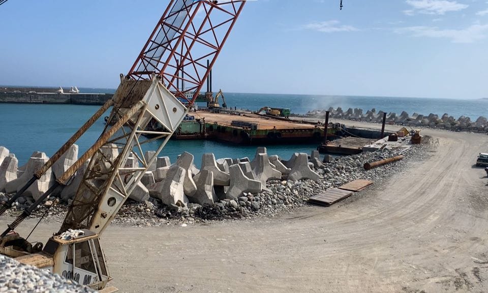 台東富岡漁港擴港 首座水泥沉箱順利就位