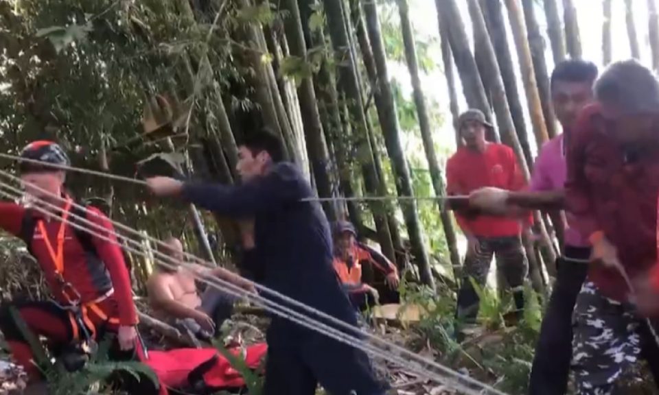 東埔民眾尋查水源墜谷 拉繩、徒步搬運救援
