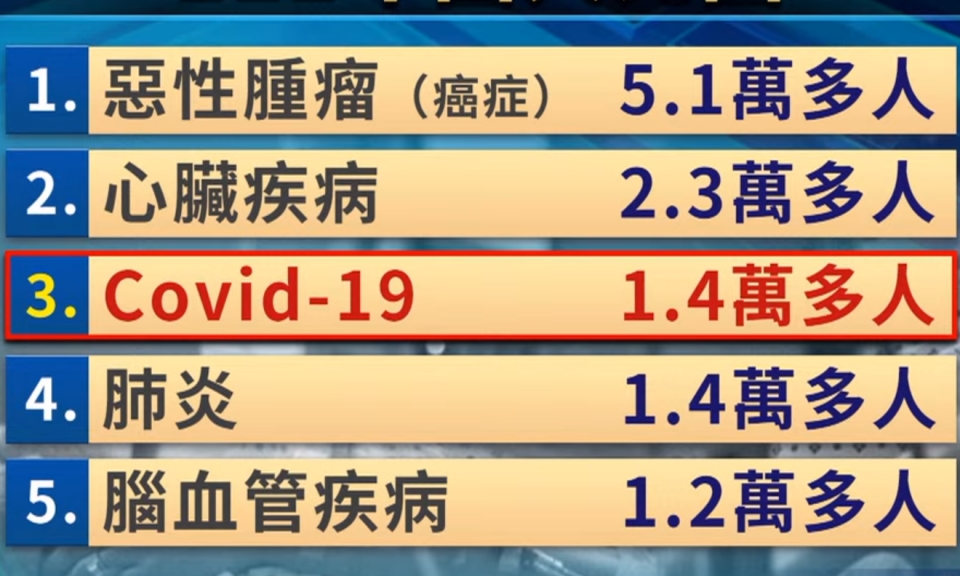 新十大死因出爐 新冠奪1.4萬條人命排第三