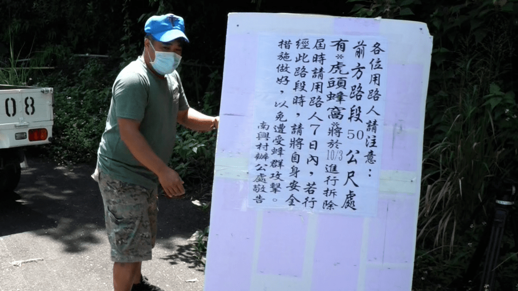 輪胎大虎頭蜂窩掉落路邊 南興村設路牌提醒避開