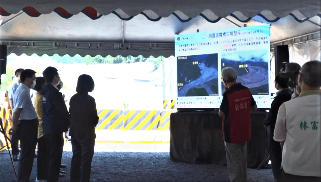 明霸克露橋遭沖毀 總統視察便道搶修現場