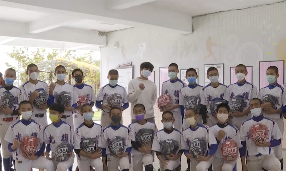 為了回饋母校,職棒選手陳文杰在過年前夕捐贈76套量身訂製的球具給光復國小及國中的小球員們使用,希望能夠讓球員們在打球時有更好的表現。