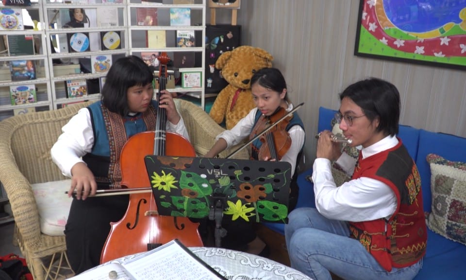 屏東縣城鄉藝文交流協會理事長蔣美花,去年在三地門鄉成立小提琴手創館,經過一年推廣,日前舉辦成果展。