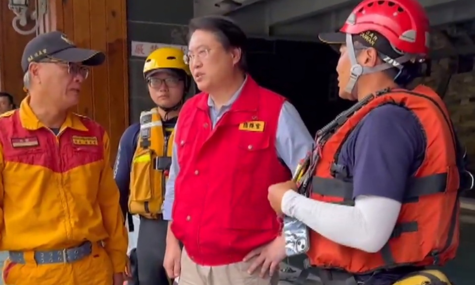 救難隊進入廬山溫泉區 架繩索助民眾脫困
