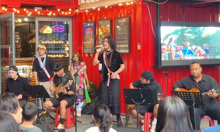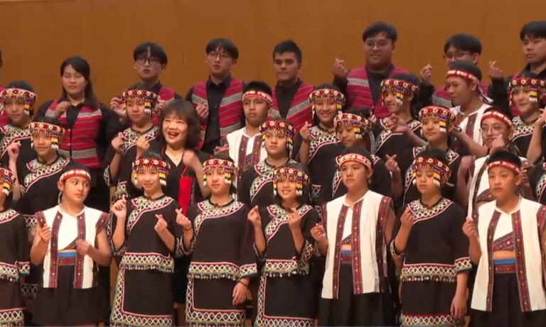 在老師的引導下,學生們專注地吹奏鼻笛;這是高雄大學原資中心舉辦的「鼻笛藝術師生成果發表會」展現學習成果,從鼻笛的材料製作到鑽孔,都由排灣族口鼻笛傳承藝師少妮瑤.久分勒分親自指導,讓不同族群的學生及教職員,體驗排灣族傳統樂器的文化底蘊。
