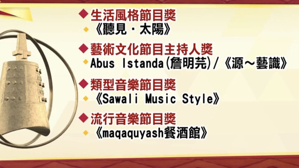 第57屆廣播金鐘獎1號正式公布入圍名單,今年共有885件作品一同角逐26個獎項,其中,由原住民族廣播電台Alian96.3製播的節目,今年共入圍4項大獎,包括以介紹原民生活、文化以及部落產業為主的《聽見太陽》,入圍了《生活風格節目獎》;而深度介紹當代原民族群各項藝術表現、藝術觀的《源藝識》主持人「