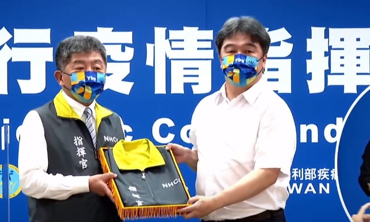 後方看板大大寫著2019年全國原住民健康大會在屏東舉辦,照片裡布農族醫師田知學就站在時任衛福部長陳時中旁邊,讓她回憶起當時陳時中對原住民族健康醫療的承諾。