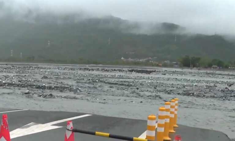 記者 Fuyan(林新棠):「好的主播、各位觀眾,記者Fuyan目前所在的位置是花蓮縣萬榮鄉台九線231公里處,因為受到鳳凰颱風的影響,從昨天開始這裡就降下了大雨,而馬太鞍溪的水位也在昨天下午四點半,就已經達到道路封閉的標準,而目前涵管便道也受到馬太鞍溪、溪水暴漲的影響,是整個被淹沒的情形。