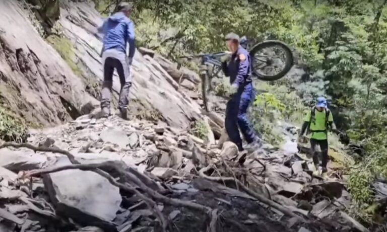 海浪衝擊消波塊形成的浪花水氣也順著飄到公路,導致霧濛濛的一片,小犬颱風逐漸逼近,台東南迴地區外海也出現陣陣長浪,不過白天的天氣依舊晴朗炎熱,預估在颱風路徑範圍的達仁鄉南田村居民,不敢掉以輕心,放置沙包壓在鐵皮屋頂上來避免遭強風侵襲。