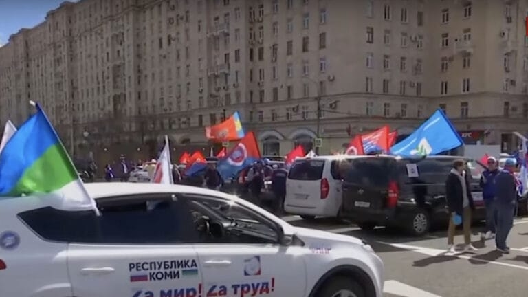 國際 政經 俄烏戰爭 抗議 普丁 俄烏戰爭持續延燒 俄國境內外掀起正反聲音 142 揮舞著旗幟、按著喇叭,由各工會團體所號召的車隊,在5月1日這天,浩浩蕩蕩地開進莫斯科,表達對總統普丁的支持。 2022-05-03 12:34