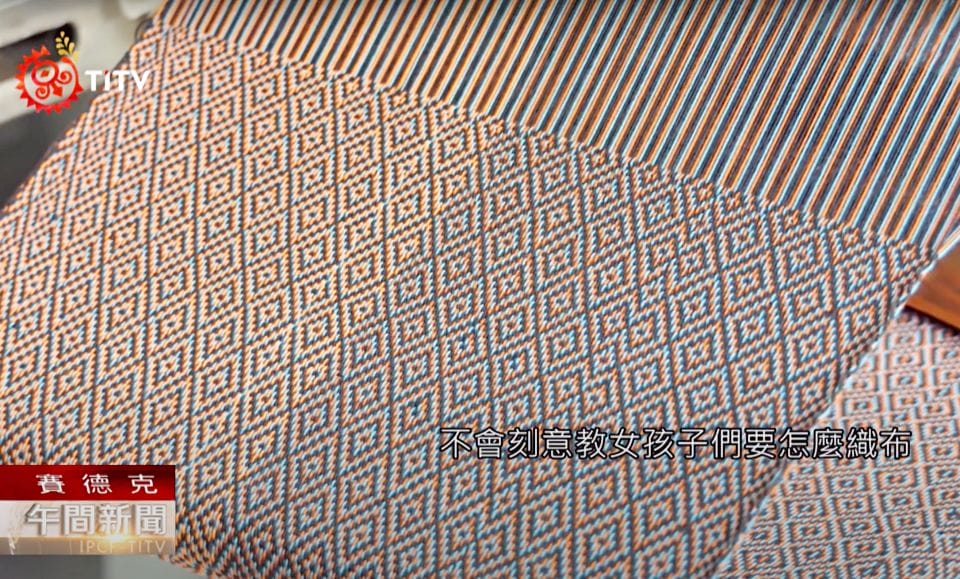 施金花 Seediq 表示:「是!聽說早期是這樣的,但是我們沒有趕上那個年代比較好了,就算不會織布,別人也不會說什麼了。在我們之前女孩子必須要會織布,以前如果不會織布的話先生和小孩子就沒有衣服穿,因為早期沒有什麼布料,所以會織布的話家裡的人就有衣服穿,不會織布的女子男人就不會娶你這個女生,所以一定要會織布,因為沒有什麼地方可以買到衣服。」