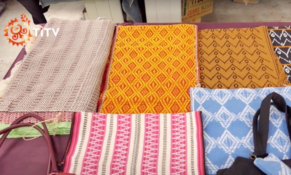 記者接著問:「像用高機話,你們可以自己變化圖騰嗎?」她分享:「可以呀!其實都可以再創新。」記者問:「那我們目前著重的話,像妳剛提到的創新就是這個部分,像我們做的這個,我們設計的是一個米的概念 。」她表示:「對!就是一個米很像有一個米這樣子放大縮小,這樣然後我們會再進而設計一個包包,看是包包啊、還是抱枕啊,都可以做 。」