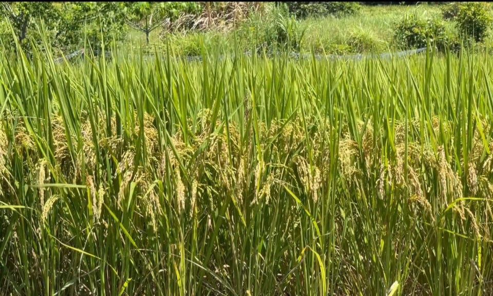 稻穗已經形成金黃色準備收割,但稻農卻高興不起來,主要辛苦種植的稻子,遭到野生動物獼猴、山豬肆虐,稻田有幾處都被踩踏、倒臥或被抽穗,令農民非常心痛,同時每天必須到田裡巡視、驅趕,還設置圍網防堵,但都防不慎防。