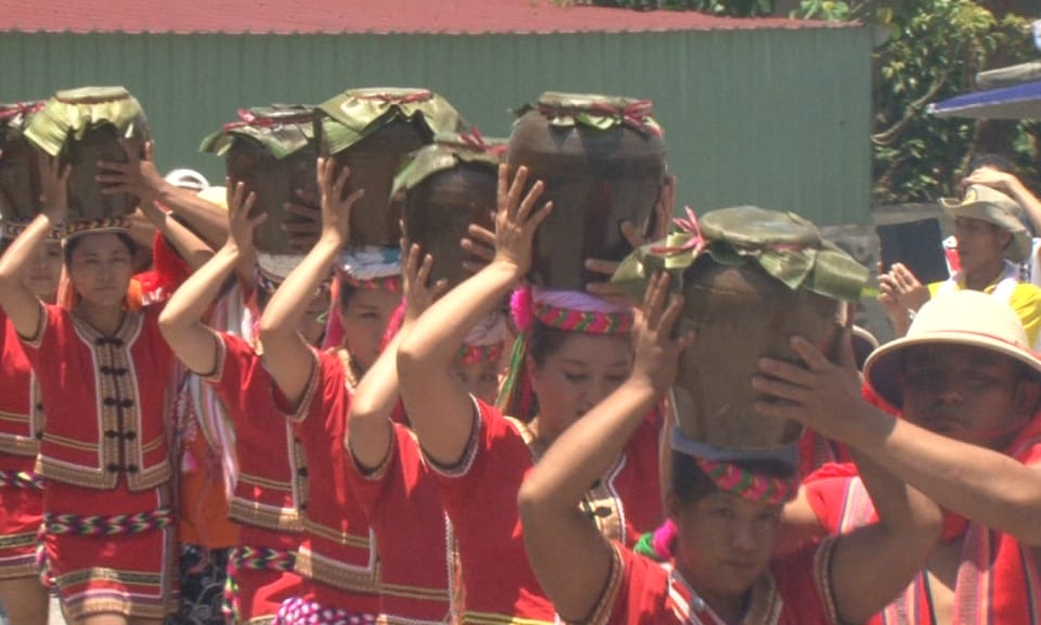 7位婦女頭頂著酒罈來到年祭會場,準備進行Lingacay部落特有的七罈酒獻祭儀式,展開一年一度的年祭。由於七罈酒獻祭包含階層運作、釀酒技術以及傳統歌舞等豐富文化面向,在地族人視為重要的文化資產,因此決定申請智慧財產權進行保護。